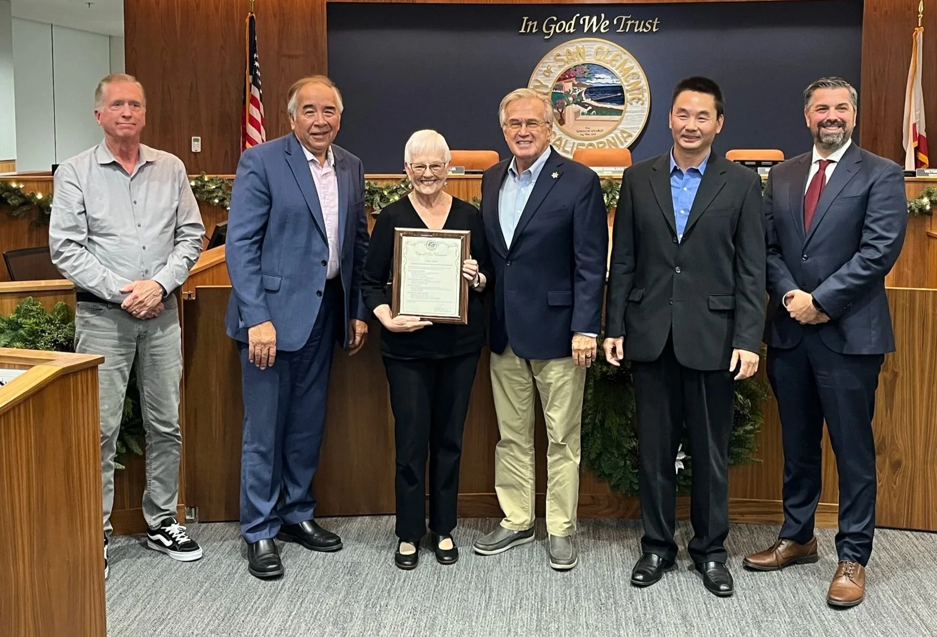 On December 9, the San Clemente City Council reviewed community nominations and proudly selected our own San Clemente Garden Club member, Lana Doyle, as a 2025 Wall of Recognition recipient. The Council also authorized the Mayor to present Lana with a certificate and plaque in honor of her extraordinary service.
